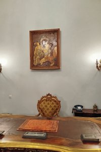 Ακολούθως ο κ. Μιχάλης Σπύρου μας ξενάγησε στο διαμέρισμα του Αρχιεπισκόπου Μακαρίου Γ' και στο Μικρό Συνοδικό.