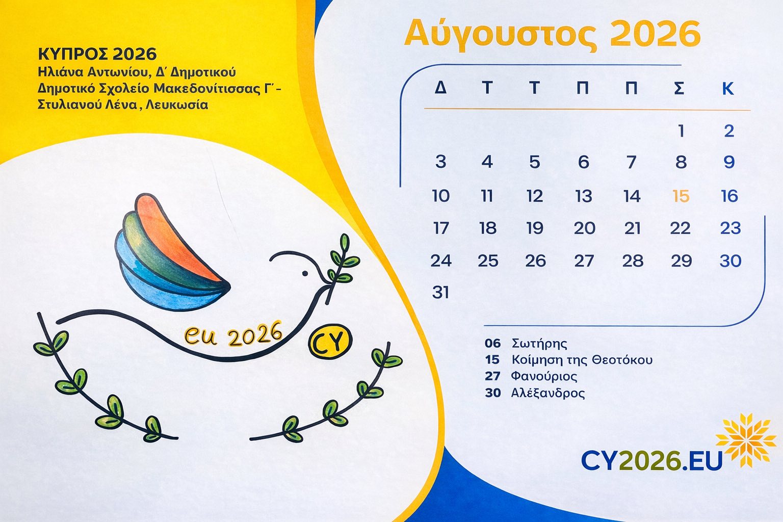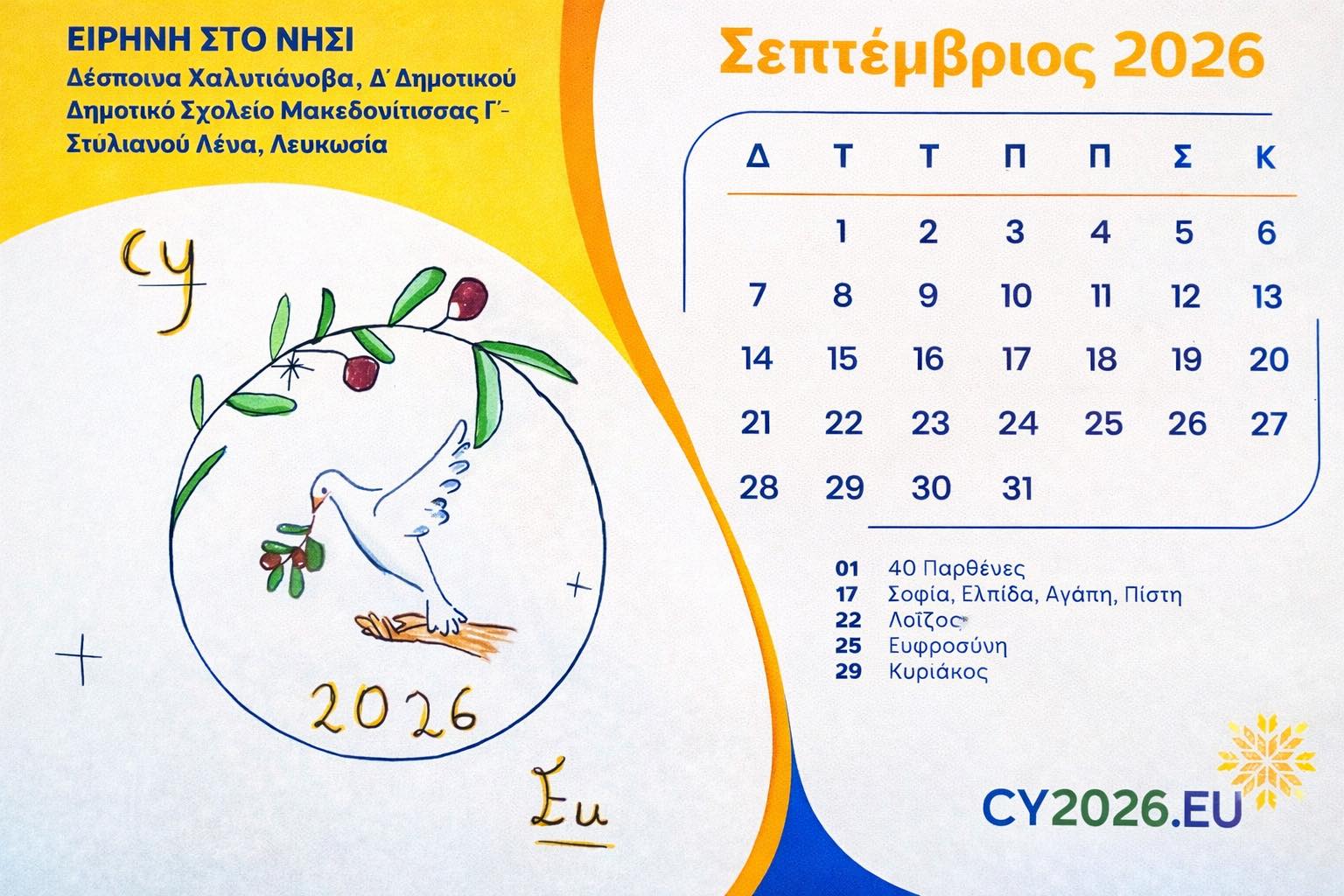 Το νικητήριο παιδικό λογότυπο έχει κοσμήσει το εξώφυλλο ημερολογίου που έχει εκδοθεί ειδικά για την Κυπριακή Προεδρία 2026, ενώ τα υπόλοιπα διακριθέντα έργα ενσωματώθηκαν στις σελίδες του.